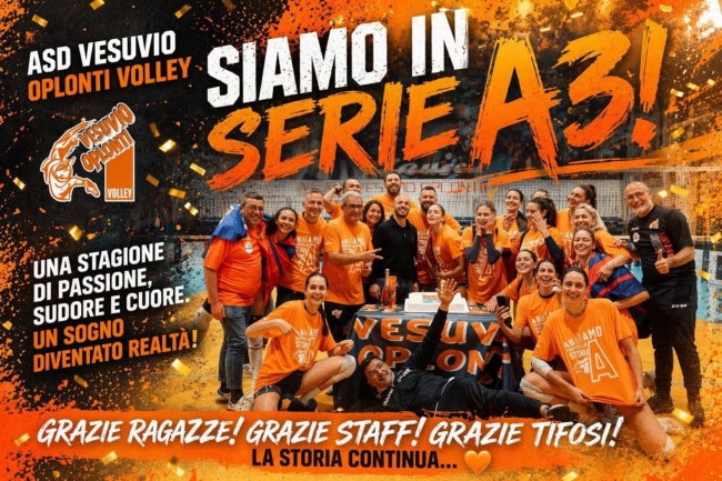 Congratulazioni alla ASD Vesuvio Oplonti Volley per lo straordinario risultato ottenuto conquistando la serie A con diverse giornate d’anticipo. Un traguardo senza precedenti, frutto di un lavoro serio e costante, di enormi sacrifici e di una visione lungimirante che il grande presidente Angelo Cirillo ha saputo trasmettere a tutto lo staff, creando una vera famiglia. Tanti giovani,…