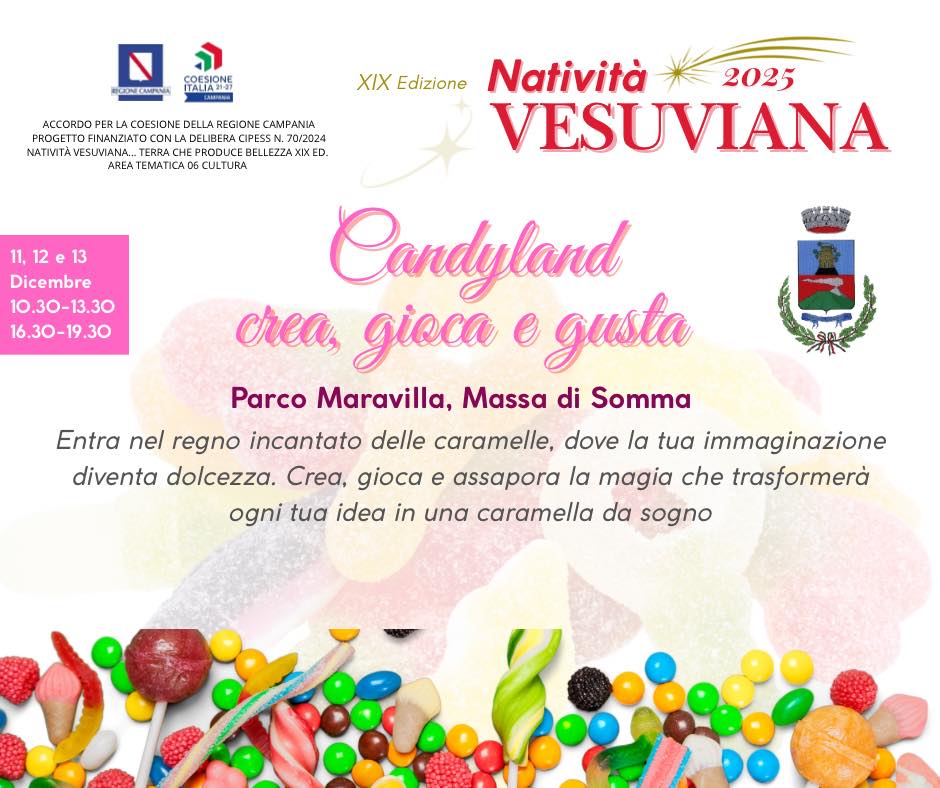 - Massa di Somma ospiterà, a partire dall’11 dicembre, “Candyland”, il villaggio delle caramelle, mentre