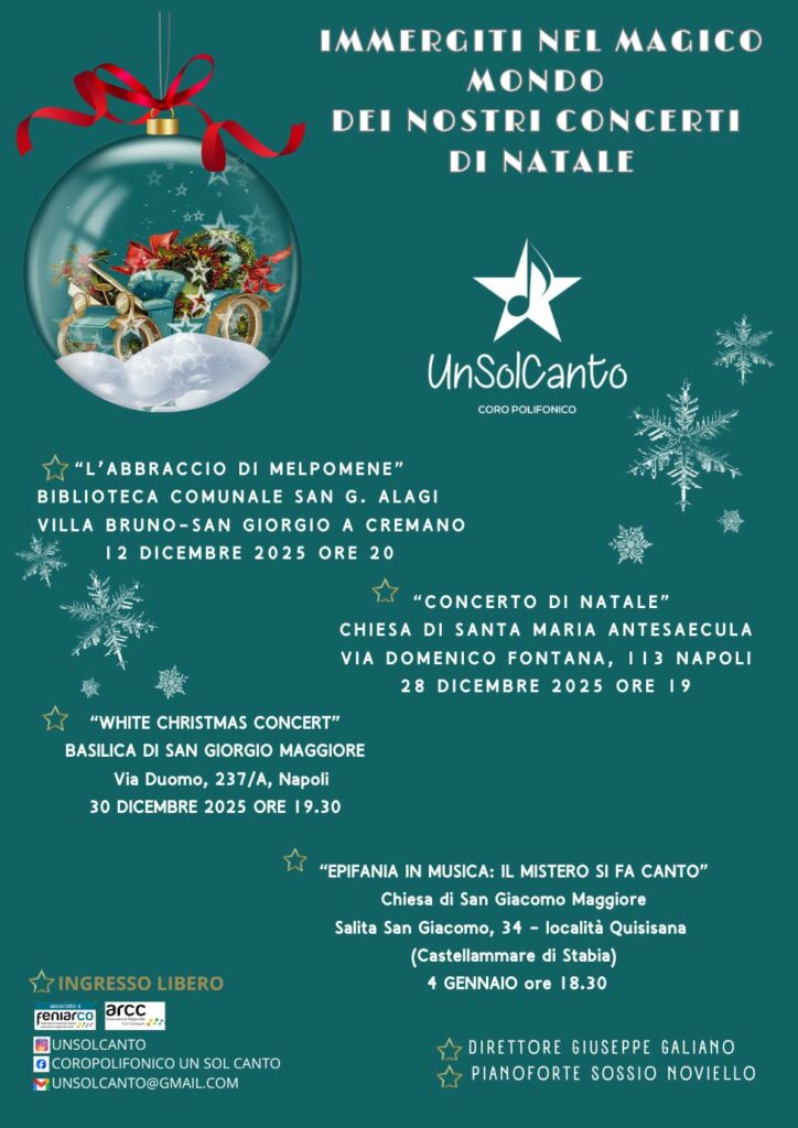 Il coro polifonico UnSolCanto ti invita a quattro appuntamenti musicali speciali, tra atmosfere incantate, armonie senza tempo e la magia del Natale.