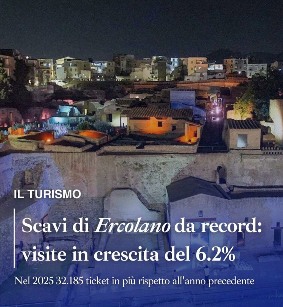 | Ercolano cresce, e lo fa con la forza della cultura. I dati pubblicati di recente confermano un record nel 2025 per il Parco Archeologico di Ercolano, con un aumento dei visitatori del 6,2% rispetto al 2024. Questo non è solo un numero, ma la testimonianza concreta di quanto la valorizzazione del nostro patrimonio culturale sia una leva fondamentale per lo sviluppo economico e sociale del territorio. Credo fermamente nel valore della cultura come motore di crescita. Valorizzare le bellezze naturalistiche e culturali di Ercolano, come di tutta la Regione Campania, significa creare opportunità di lavoro per i giovani, attrarre investimenti e favorire inclusione sociale. È così che si costruisce uno sviluppo sostenibile, che parte dalle radici profonde della nostra storia per proiettarsi nel futuro. La bellezza non è un regalo, è una risorsa da difendere e promuovere con impegno. Ercolano ne è un esempio e questo successo turistico deve essere una sfida per puntare a traguardi sempre più ambiziosi. Ciro Buonajuto |