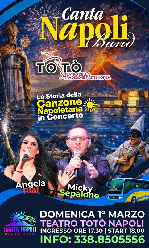 | Torna a Napoli l’omaggio ai grandi maestri della musica partenopea con Micky Sepalone, Angela Piaf e la Canta Napoli Band Micky Sepalone e Angela Piaf con la loro band tornano a riscaldare la città di Napoli. Dopo il memorabile sold out al Maschio Angioino (estate 2024) e gli strepitosi show all’interno della prestigiosa rassegna ‘L’Estate a Napoli’ (dal 2021 al 2024), la Canta Napoli Band riporta nella terra di Partenope la storia della canzone partenopea. L’appuntamento è per domenica 1° marzo alle ore 18.00 al Teatro Totò. “Tornare a Napoli è sempre un’emozione che toglie il fiato, – dichiara Micky Sepalone, presidente dell’Associazione Canta Napoli e direttore artistico della ‘Canta Napoli Band’ – ma farlo dopo lo straordinario sold out al Maschio Angioino dell’estate 2024 ha un sapore speciale. Sentire il calore dei napoletani che, con ben sei settimane d’anticipo, stanno già correndo ai botteghini del Teatro Totò ci riempie di un orgoglio immenso. Questo teatro è un tempio della tradizione e per noi rappresenta la cornice ideale per presentare ufficialmente le grandi novità del nostro tour 2026, alla sua diciannovesima edizione. Porteremo in scena la nostra visione della canzone napoletana: un equilibrio tra l’ironia di Carosone e l’energia dello swing, celebrando i grandi maestri con arrangiamenti nuovi di zecca. Sarà una festa, un abbraccio collettivo alla capitale del mondo”. “‘Canta Napoli 3.0’ è un progetto che curiamo in ogni dettaglio – gli fa eco Angela Piaf, vicepresidente dell’Associazione Canta Napoli – e vedere che il pubblico risponde con questo entusiasmo ci ripaga di ogni sforzo: la richiesta di biglietti è stata altissima fin dal primo giorno di promozione. Stiamo autoproducendo questo concerto-evento con tutta la passione e la dedizione che la musica napoletana merita. Napoli ci sta dimostrando un affetto incredibile e non vediamo l’ora di salire sul palco del Teatro Totò per condividere la nostra evoluzione artistica. Sarà un viaggio magico tra l’eleganza dei classici e la modernità del nostro sound, per dimostrare ancora una volta che la canzone partenopea non ha tempo”. Con loro sul palco una band di alto livello formata da Francesco Genovese (batteria), Enzo Toscano (basso), Yuri Pippo (chitarra elettrica e acustica), Giuseppe Fabrizio (direzione musicale, pianoforte e synth), Emanuele Acucella (sax). Alla regia audio c’è Emmanuel Venturini, mentre il service audio-luci è a cura di Carmine Grimaldi. Canta Napoli 3.0 è un capitolo tutto nuovo che trasforma il classico tributo alla tradizione in una vera e propria sfida al futuro. Non si tratta solo di un aggiornamento, ma di un salto evolutivo che nasce dalla voglia costante di sperimentare e non restare mai fermi. In questa nuova release, i brani che tutti amiamo vengono riarrangiati in modo inedito e audace, capaci di vestire la melodia napoletana con sonorità moderne e internazionali che sorprendono fin dalla prima nota. La scaletta è stata completamente riscritta per creare un flusso narrativo dinamico, un viaggio musicale senza pause dove l’innovazione incontra il calore della nostra terra. Ma la vera anima di questo upgrade è lo spettatore: Micky e Angela hanno immaginato questo show come un’opera collettiva, è il pubblico a fare il concerto con la band. La barriera tra palco e platea si sgretola, trasformando ogni live in un’esperienza condivisa dove la vostra energia e le vostre voci diventano lo strumento più importante di tutti. È un invito a riscoprire la Storia della Canzone Napoletana con orecchie nuove, sentendosi parte integrante di una rivoluzione sonora senza fine. In scaletta titoli iconici come ‘Guaglione’, ‘Tu vuo’ fa’ l’americano’, ‘Malafemmena’, ‘Luna Rossa’, ‘O Sole Mio’, ‘O Sarracino’ e ‘O surdato nnammurato’. Accanto a questi pezzi della storia della musica partenopea non mancano brani intramontabili come ‘Tu sì na cosa grande’ di Domenico Modugno, ‘A Sunnambula’, ‘T’è piaciuta’ e ‘Tre numeri al lotto’ di Renato Carosone, e canzoni di grande spessore emotivo legate a Pino Daniele e alla tradizione più moderna. Il tutto armonizzato grazie ad una fusione capace di creare un sound fresco ed energico che supera le barriere generazionali e avvicina la canzone classica napoletana a un pubblico più vasto e contemporaneo. |