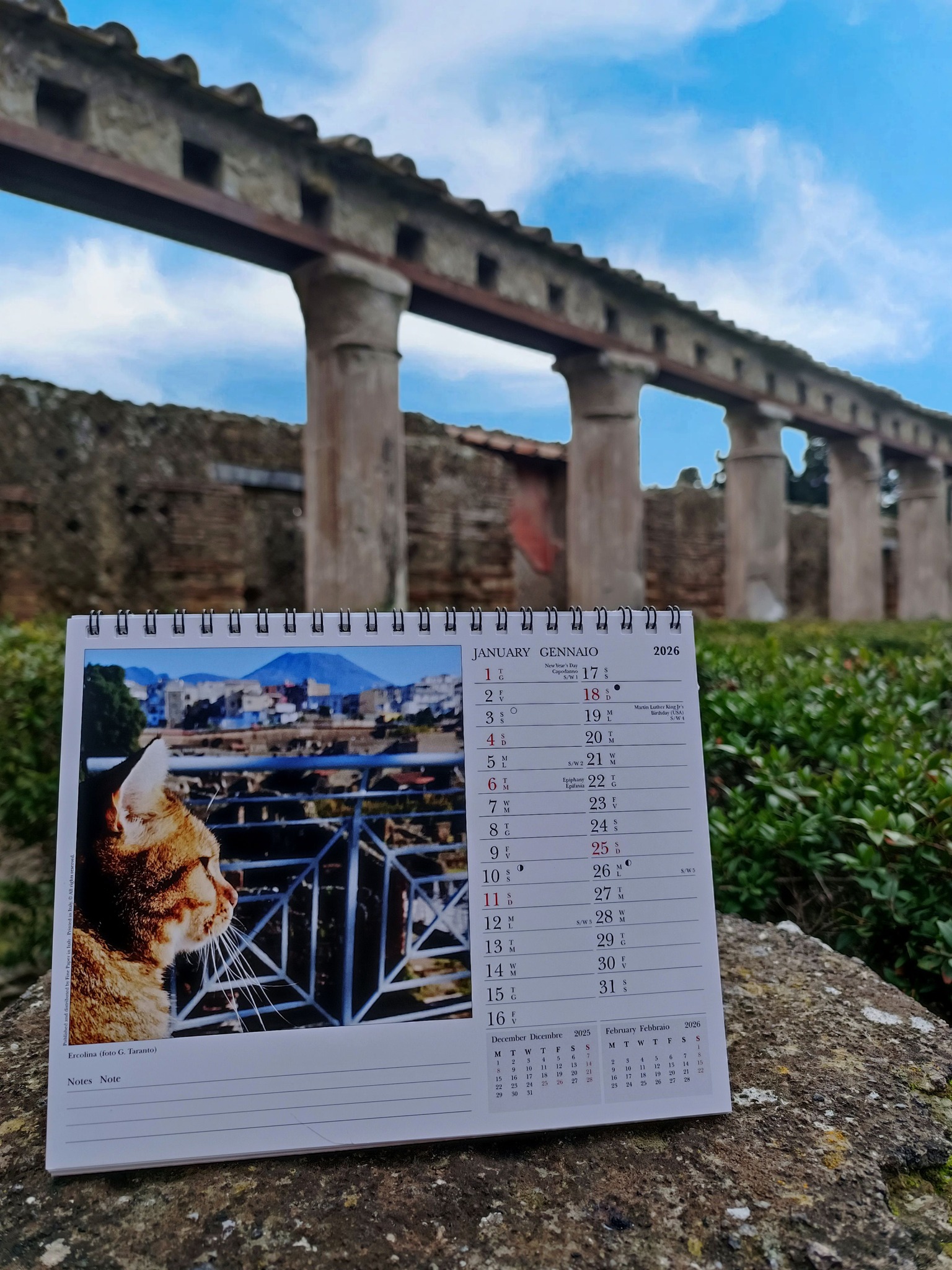 | La protagonista del mese di gennaio 2026 del calendario “I Gatti di Ercolano” è la nostra piccola Ercolina Vi ricordiamo che il calendario è acquistabile presso il bookshop del Parco Archeologico di Ercolano negli orari di apertura della biglietteria, dalle 8.30 alle 15.00. I gatti di Ercolano: eleganti ambasciatori d’accoglienza. Dopo il Colosseo il Parco registra la propria colonia felina. |