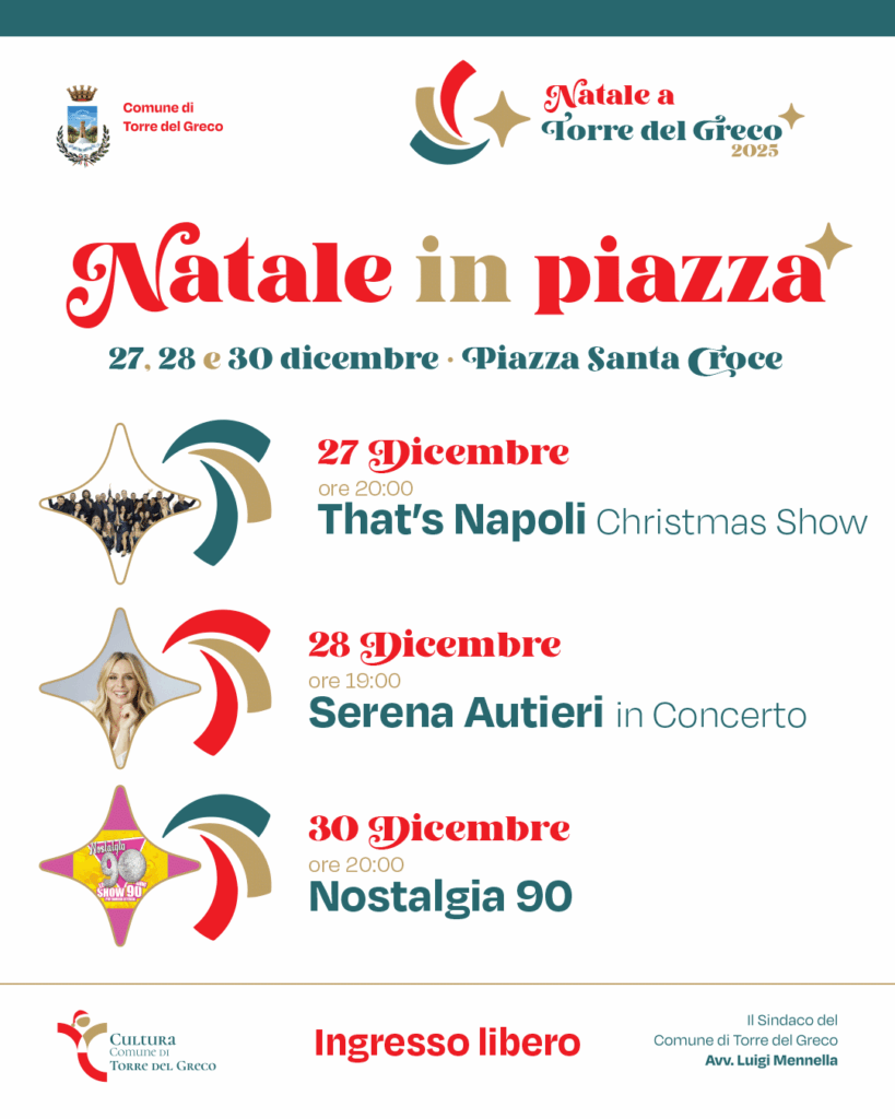 L’accensione dell’albero di Natale davanti al Santuario di S.Ciro e poi la Villa Incantata nel Parco di Villa Mascolo. Enzo Cuomo Sindaco