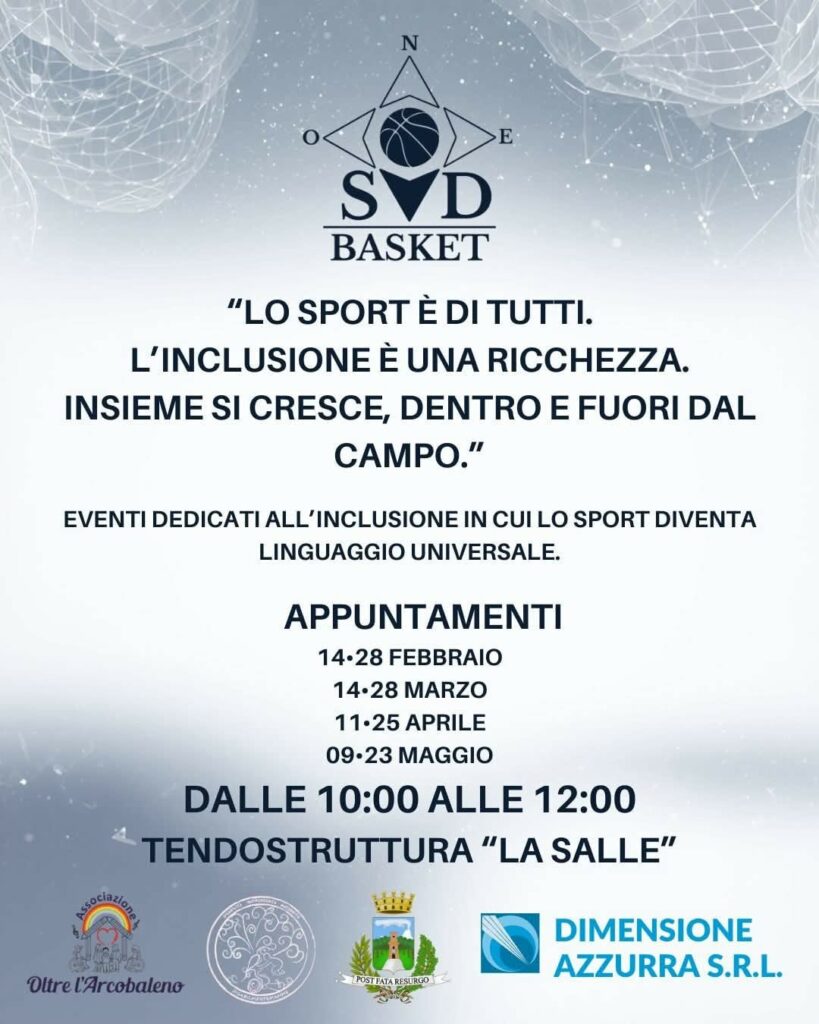 Nell’atto si legge come l’associazione sportiva Sud Basket “opera con finalità sportive, educative e sociali, promuovendo lo sport quale strumento di inclusione, aggregazione e crescita psico-fisica” e come “nell’ambito delle proprie attività, persegue obiettivi di inclusione sociale e contrasto alla marginalità, anche attraverso la realizzazione di iniziative sportive rivolte a soggetti diversamente abili”.