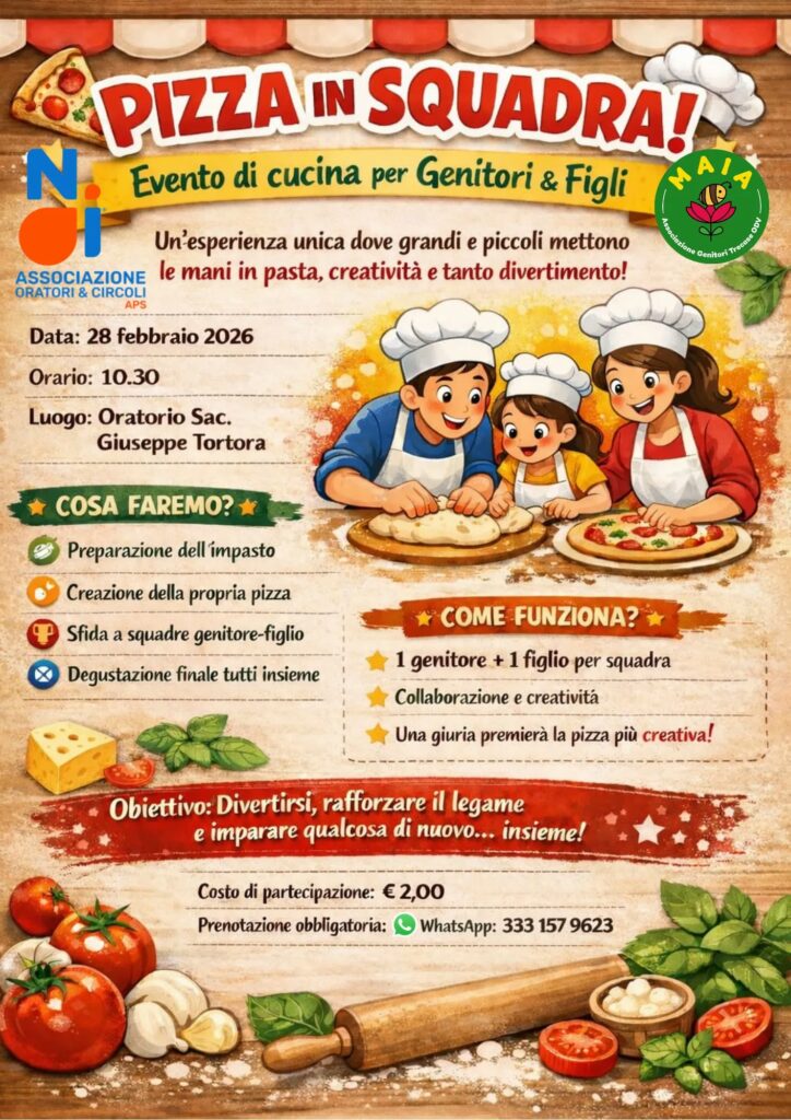 | PIZZA IN SQUADRA Migliorare la qualità del tempo trascorso in famiglia condividendo momenti mediante di amore, creatività ed unione attraverso la cucina Dai sfogo al pizzaiolo che è in te |