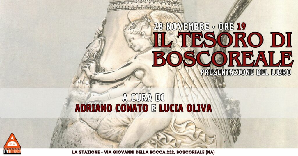 “E’ narrata la storia del ritrovamento, nell’aprile del 1895, di un favoloso Tesoro di raffinate argenterie romane nelle campagne di Boscoreale fra i ruderi di una villa romana distrutta dal Vesuvio nel 79 d.c. in località Pisanella. Il fortunato scopritore, Vincenzo De Prisco, dopo avventurose vicende, vendette per una cifra enorme per l’epoca, i preziosi argenti al Barone E. de Rothschild che a sua volta li donò al Museo del Louvre di Parigi dove si trovano ancora oggi.