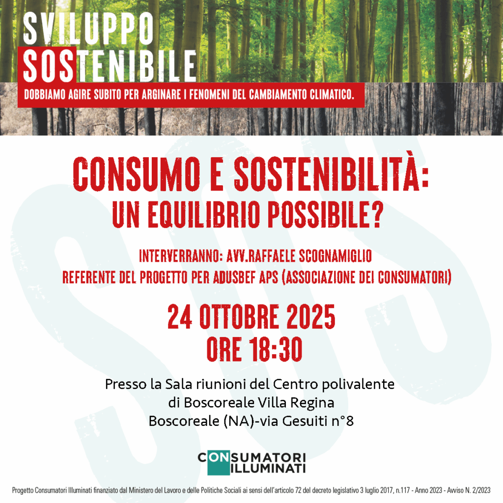 Continua il progetto “Consumatori Illuminati” con un nuovo incontro dedicato a consumo e sostenibilità.
