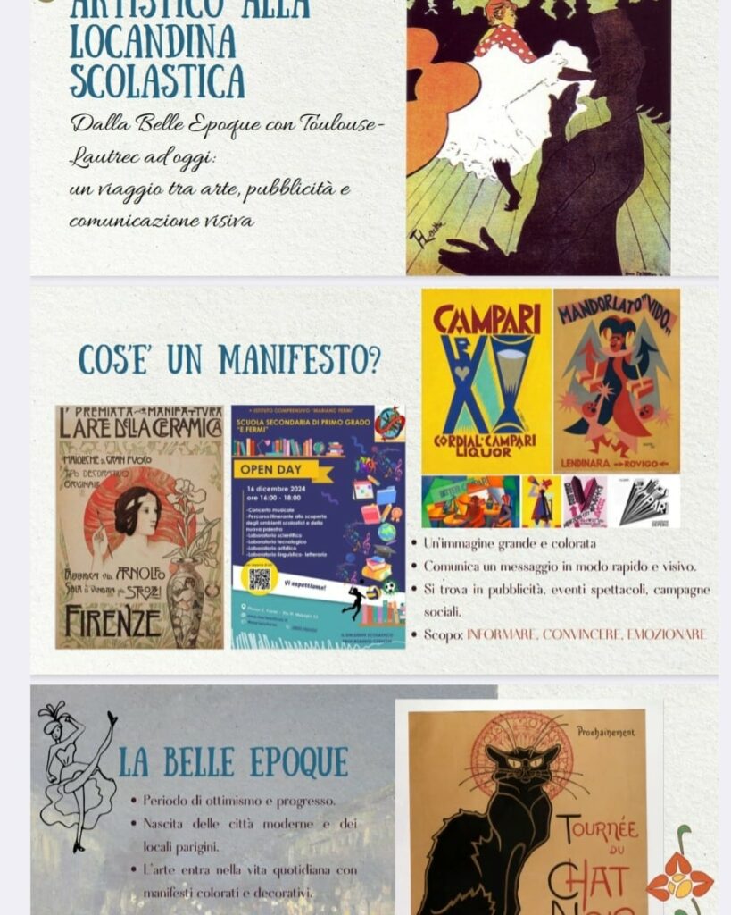 | Ic3 Castaldi Rodari Secondaria, plesso Marchesa Arte e Immagine/Italiano-storia – 3A – Dopo una lezione introduttiva sulla nascita del manifesto e della sua evoluzione storica e artistica, gli studenti, divisi in tre gruppi, si cimentano nella realizzazione di locandine scolastiche avvalendosi anche dei dispositivi digitali. Il progetto “Dal manifesto artistico alla locandina scolastica” è trasversale e si propone di conseguire molteplici competenze: artistiche/creative, comunicative, storiche/culturali, tecnologiche, di progettazione e pianificazione, di problem solving e di autovalutazione. Istituto Comprensivo “Castaldi Rodari” Boscoreale |