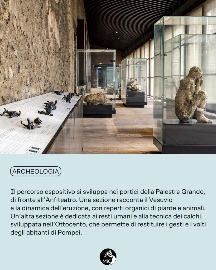 La nuova esposizione che ripercorre l’origine, la storia dell’eruzione e la tecnica dei calchi, è il risultato di un dialogo tra un linguaggio museale teso a dare dignità alle vittime dell’eruzione, ma al tempo stesso a raccontarne la storia con cura scientifica.