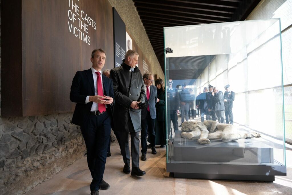 Dichiara il Ministro della Cultura Alessandro Giuli: “Mi ha colpito l’allestimento fatto con grandissimo rigore scientifico, la capacità di restituire la cruda verità dell’eruzione di Pompei e l’espressività dei calchi. E al tempo stesso l’atteggiamento rispettoso nei confronti delle vittime, attraverso una galleria del dolore che ci restituisce la verità come in un sacrario contemporaneo, perché tutte le tragedie che avvengono per calamità naturali sono condensate in questa magnifica, terrificante ed esplicativa rappresentazione che il direttore e tutto il magnifico staff del Parco archeologico ci hanno offerto.