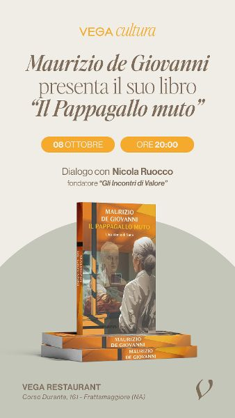Mercoledì, 8 ottobre 2025, alle ore 20:00, a Frattamaggiore (NA), presso Vega Restaurant (Corso Durante, 162), è in programma un nuovo e autorevole appuntamento nell’ambito del salotto letterario Vega Cultura: lo Scrittore, Sceneggiatore, Autore e