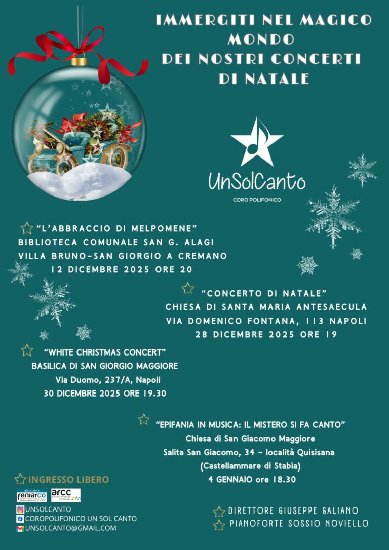 Immergiti nel magico mondo dei nostri Concerti di Natale! ✨Il coro polifonico UnSolCanto ti invita a quattro appuntamenti musicali speciali, tra atmosfere incantate, armonie senza