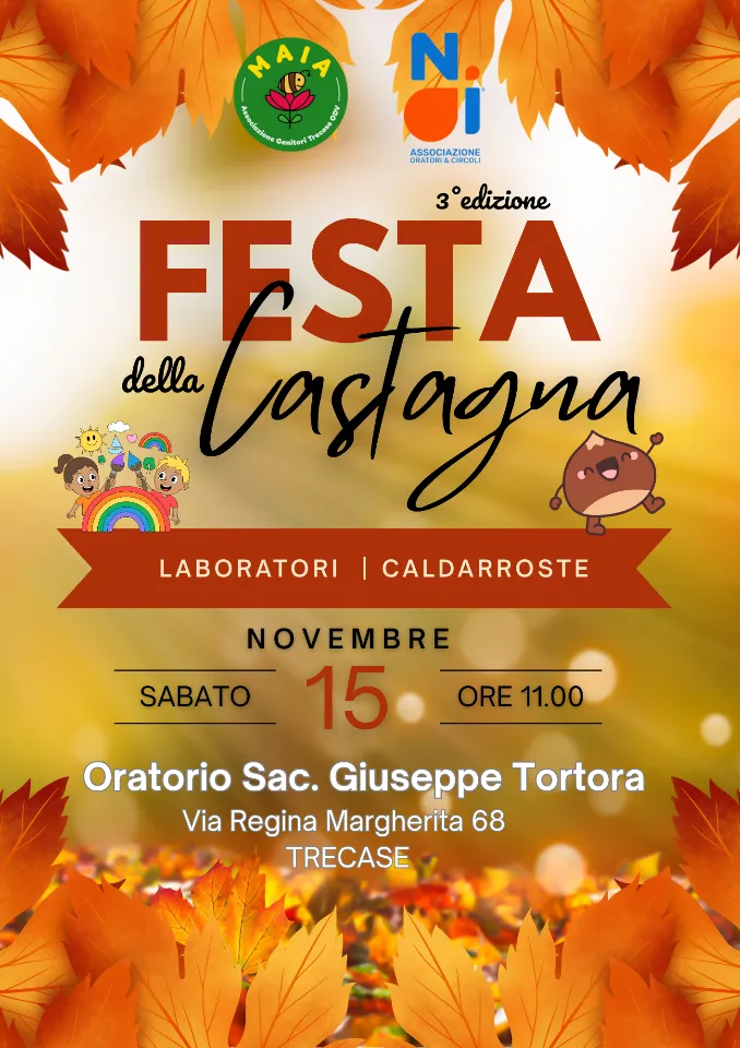 FESTA DELLA CASTAGNAFESTA DELLA CASTAGNA 3°EdizioneSabato 15 novembre dalle 11.00 i #Volontari invitano tutti i #bambini con le #famiglie ad una mattinata ricca di attività e #divertimento Tantissime attività da fare insieme ed